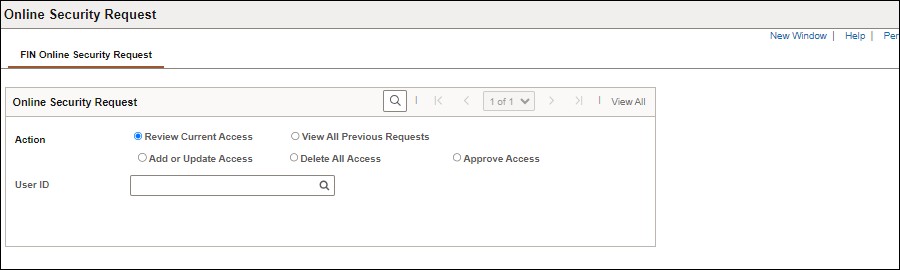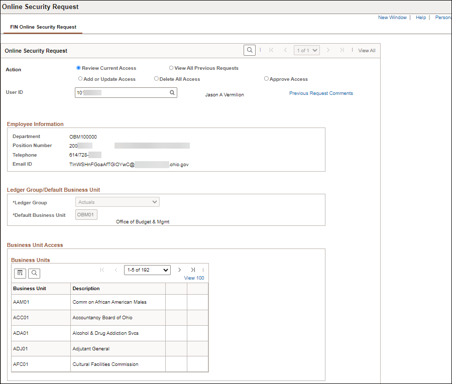 Prior to accessing the Online Security Request, review the information contained in the Agency FIN Role Handbook available in OAKS FIN using the OH_ROLE_HANDBOOK query.