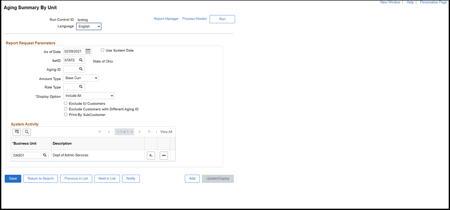 Enter a descriptive Run Control ID that can be easy to identify and reuse.