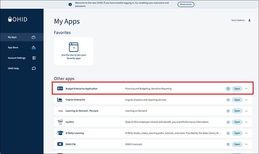 Access the Budget Enterprise Application through the myOhio portal.